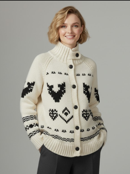Sweet Christmas Striped Viscose Cardigan – Mock Neck Long Sleeve with Buttons