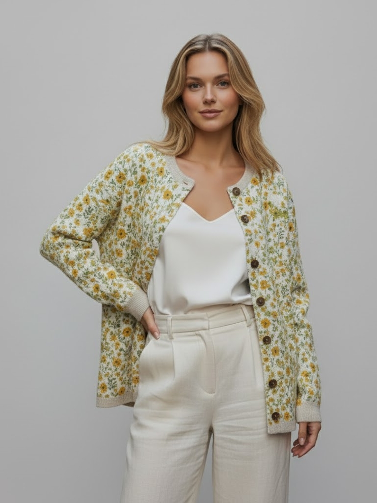 Vintage Floral Wool Blend Pullover – Retro Round Neck Long Sleeve Loose Fit Sweater