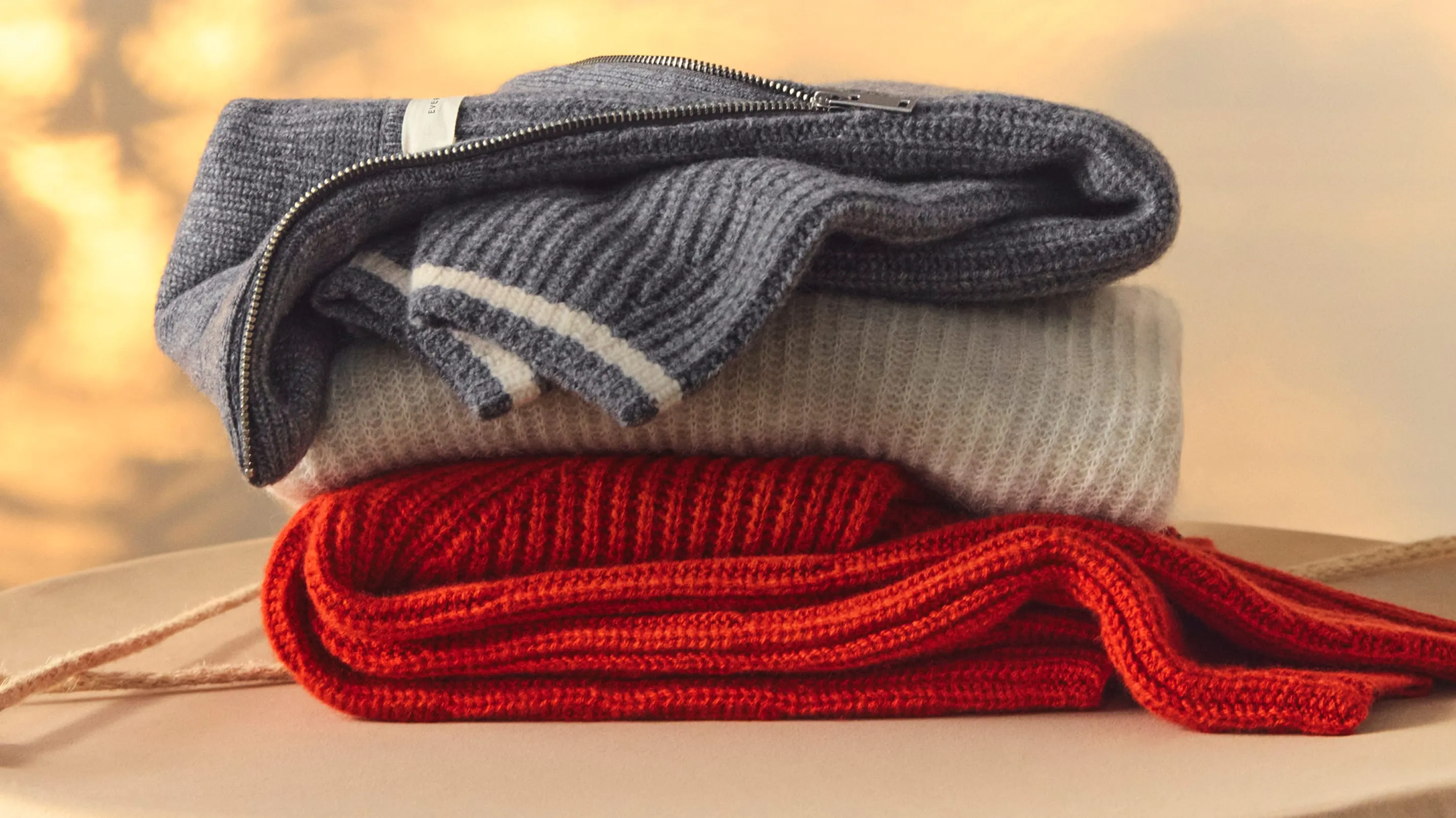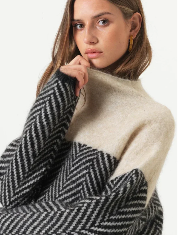 Striped Oversize Knit Pullover with High Collar and Puff Sleeves