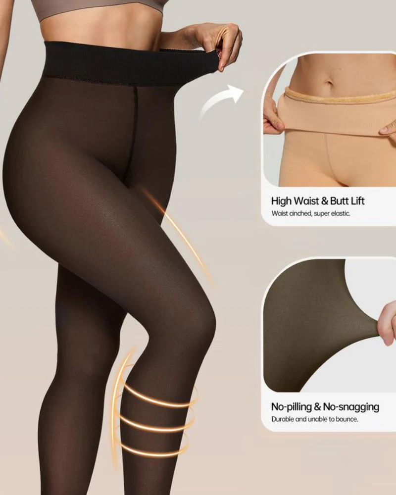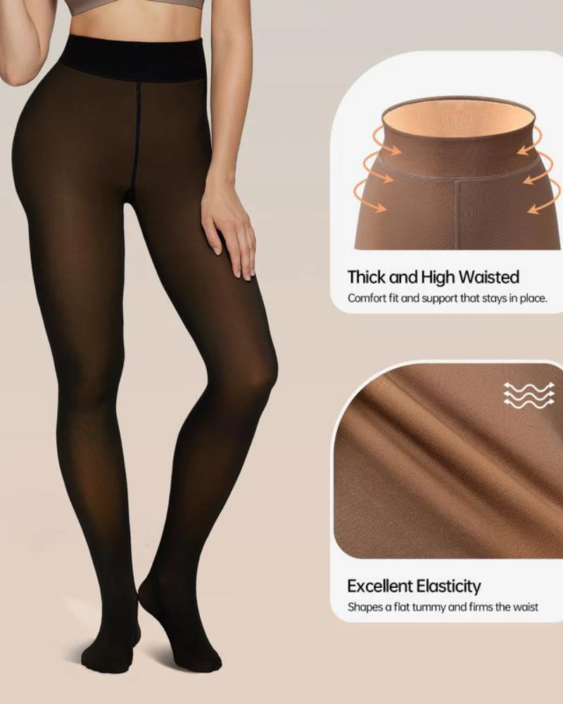 Gefüttert mit ultra-weichem Baby-Fleece für wohlige Wärme ohne aufzutragen. Das Super-Stretch-Material schmiegt sich natürlich an Ihre Beine an, bewegt sich frei mit und erzeugt einen makellosen "Sheer"-Effekt, der genau wie echte Haut aussieht.