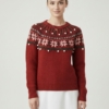 Snowflake Jacquard Pullover Sweater – Off-Shoulder Boat Neck Long Sleeve